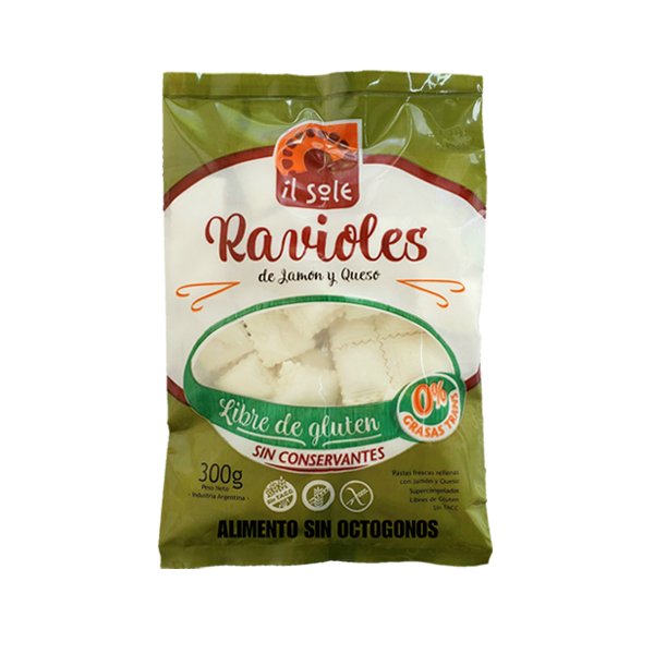 RAVIOLES IL SOLE JAMON Y QUESO (SIN TACC) CONG X 300G